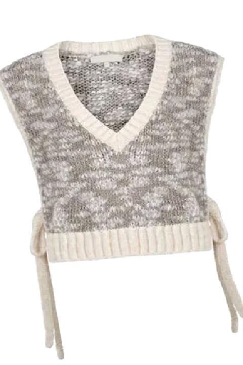 Yanları Bağlamalı Gri-Ekru Triko Yelek