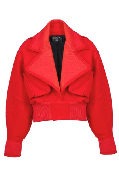 Büyük Vücut Kırmızı Yün Bomber Ceket