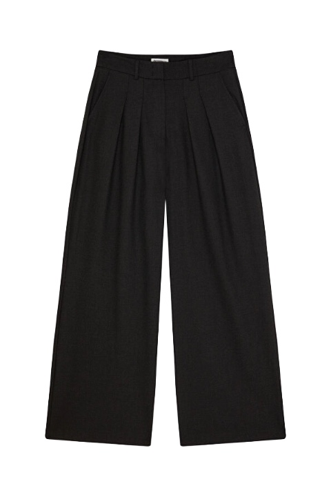 Relax Kalıp Koyu Gri Bol Paça Yün Pantolon