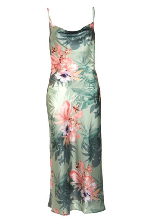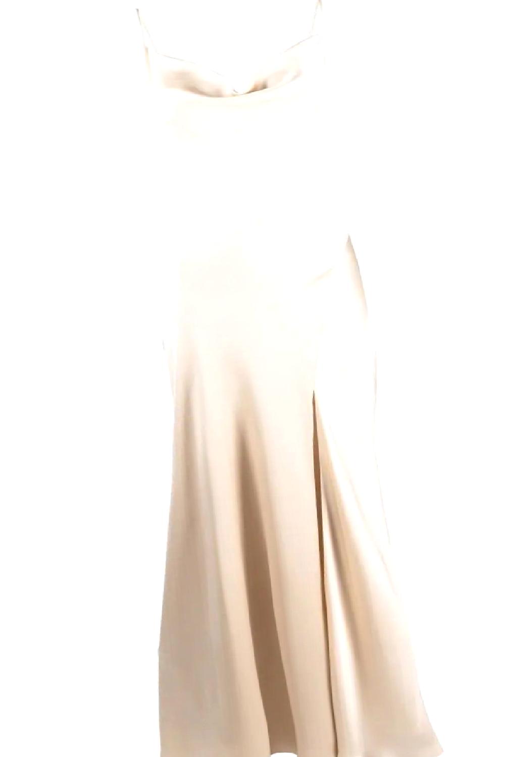 Nadia Sırtı Açık İki Ton İpek Saten Midi Elbise