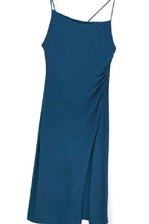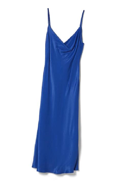 Mentalo Mavi Maksi Saten Ağabeye Elbise