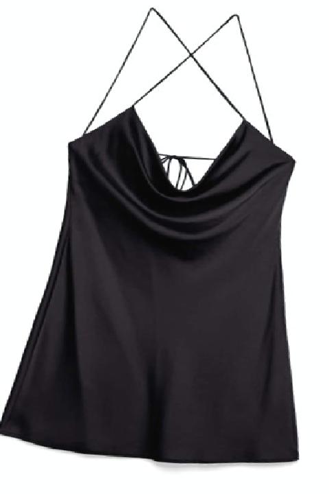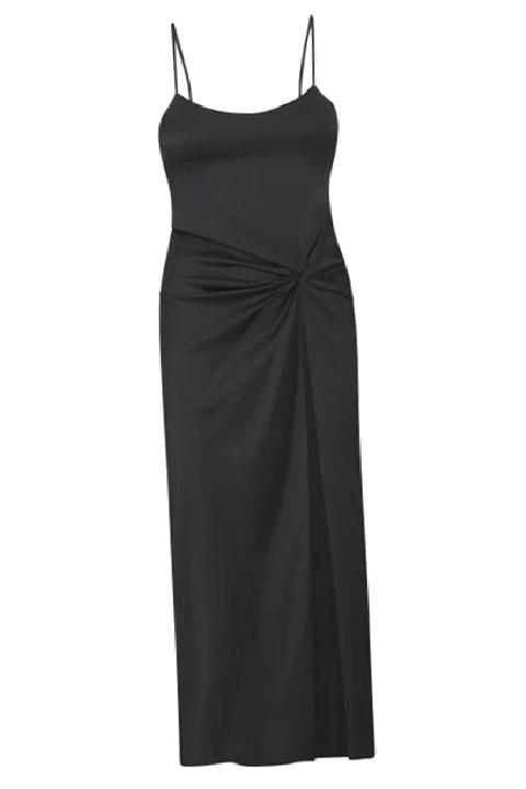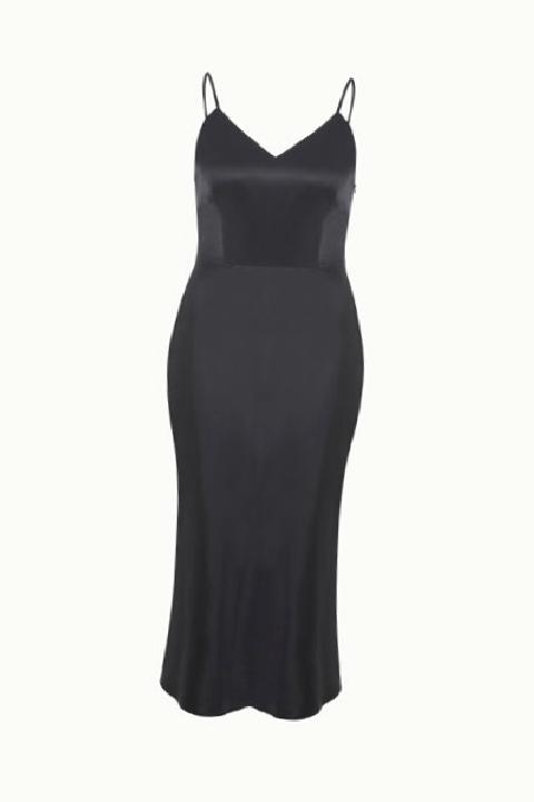 Victoria Beckham’ın en yakın arkadaşlarından aktris Eva Longoria, arkadaşının markasından askılı siyah bir slip elbise seçti.