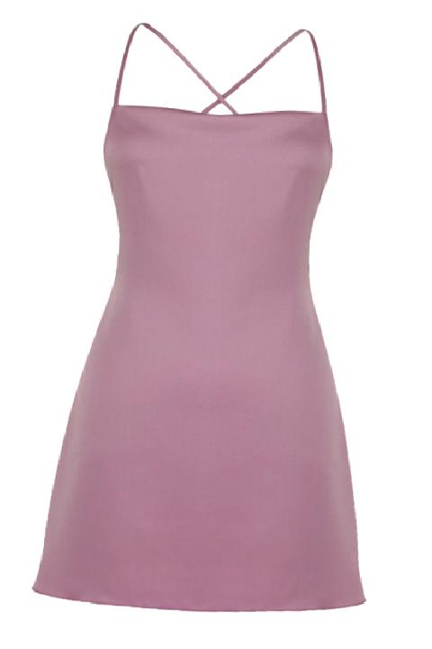 Venita İp Bağlamalı Küçük Saten Lila Elbise