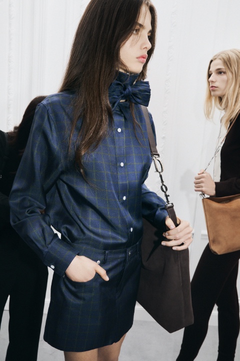 Defile öncesinde makyaj direktörü Peter Philips’in hedefi açıktı: modellerin “en iyi halleriyle ama neredeyse makyajsız gibi” görünmesi. Bu sade yaklaşım koleksiyonda, dikkat çeken fiyonklar, yeniden yorumlanan New Look ceketler ve kravat detaylarının öne çıkmasını sağladı.