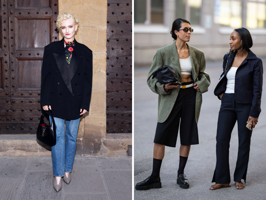 Daha klasik bir yaklaşım tercih edenler için, tek düğmeli blazer’la düz paça jean ikilisi hâlâ güçlü bir seçenek. Geçtiğimiz aylarda Venedik Film Festivali’nde aynı görünümü giyen Julia Roberts ve Amanda Seyfried, duruşları ve parçaları taşıma biçimleriyle bir nebze olsun farklı görünmeyi başarıyordu.