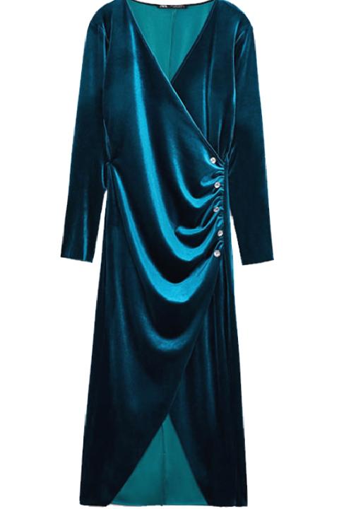 Parlak Taş Düğmeli Kadife Elbise, 699.95 TL ZARA zara.com