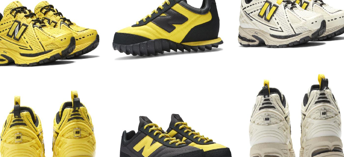 Reffstrup, 1906R model sneakerları canlı parlayan sarı ve daha nötr bir balıkçıl renginde yeniden hayal etti. Ortak markalı koleksiyondaki diğer ayakkabı ise sarı vurguları olan tamamen siyah bir spor ayakkabı olan RC30 Trackster.