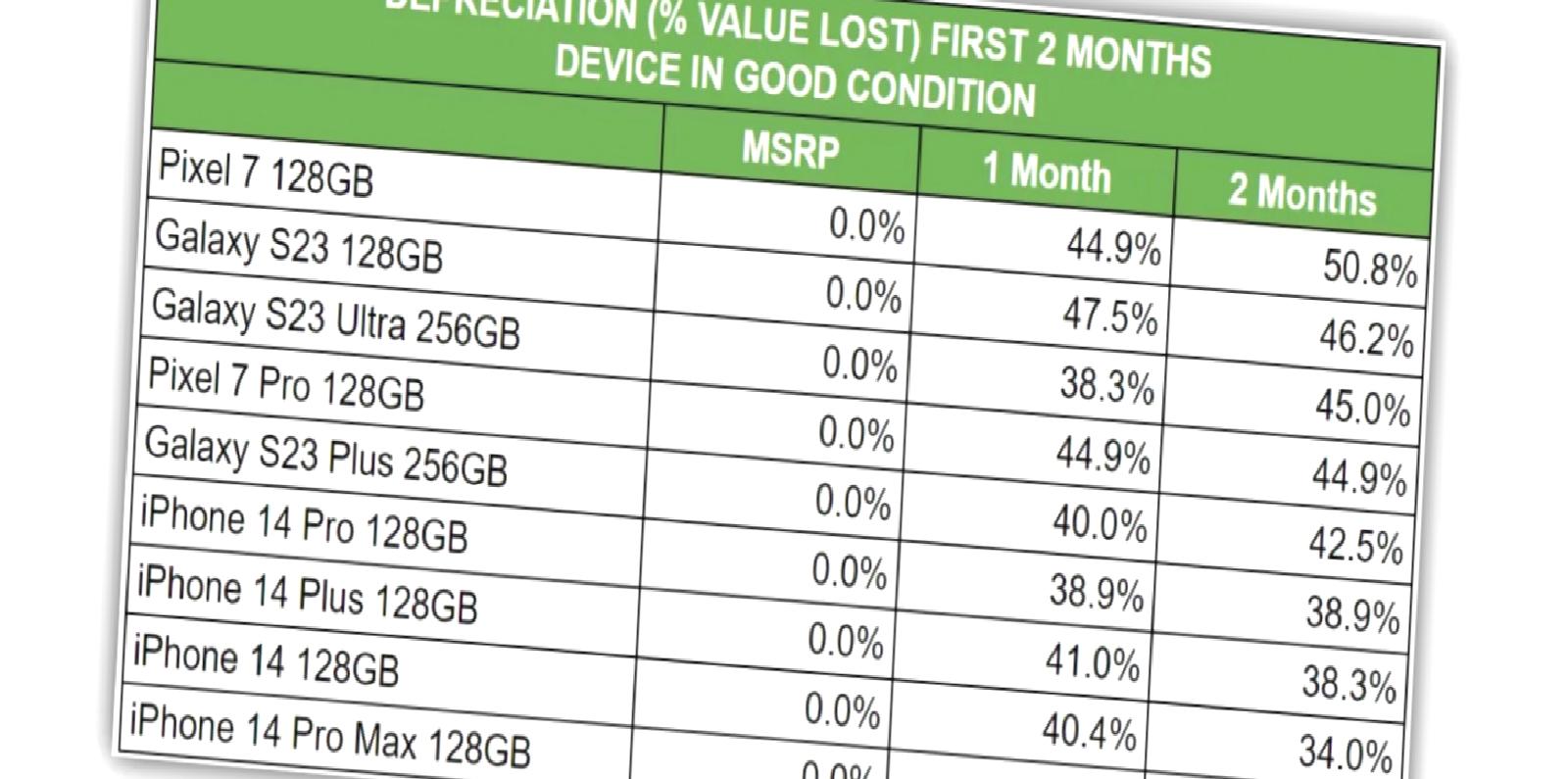 SellCell tarafından yapılan son tahlilde şirket, Samsung Galaxy S23, Apple iPhone 14 ve Google Pixel 7 modellerinin lansmanlarından bu yana ortaya çıkan amortisman bilgilerini inceledi.