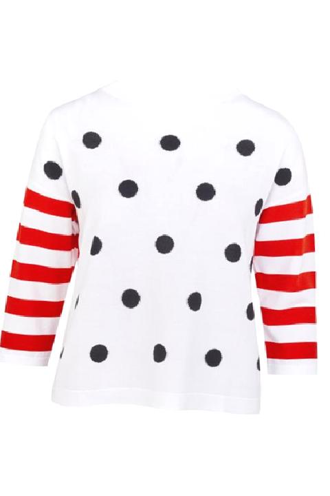 Beyaz Puantiyeli Çizgili Truvakar Kollu Triko