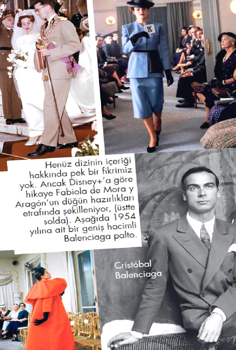 Kesinlikle Balenciaga’nın yıldızlaştığı anı izlemek isteriz ama! Belçika kralı Baudouin ile evlenecek Fabiola de Mora y Aragón’un 1960’taki düğünü ve o gelinliği tasarlaması merkezde yer alıyor. Bu çıkış noktasının nereye bağlanacağını düşünmek biraz farklı. Çünkü Balenciaga’nın aklımızda yer eden ilk anısı bu değil. Ama Balenciaga’nın en verimli yıllarının 50’li ve 60’lı yıllar olduğunu biliyoruz.