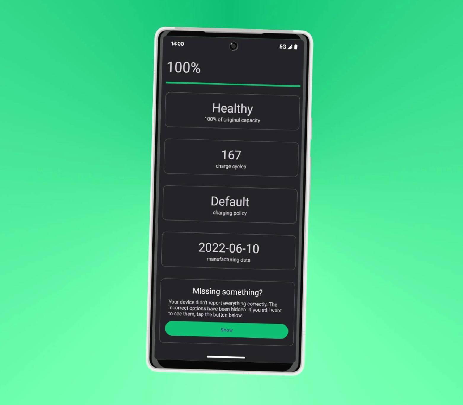 Android akıllı telefonlarda, orjinal kapasiteye kıyasla bir pilin kalan azamî kapasitesini gösteren iPhone gibi bir Pil Sağlığı özelliği bulunmuyor. Samsung, Samsung Members uygulamasında pil sıhhatini gösteriyor olsa da, iPhone’larda olduğu kalan kapasitenin doğru bir yüzdesini göstermiyor. Lakin Android 14 ile Google, detaylı pil sağlığı istatistiklerini Android telefonlara ve tabletlere getirebilecek yeni özellikler üzerinde çalışıyor.