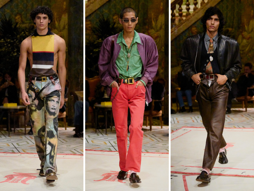 Vitale’nin Versace’si yalnızca kırmızı halıya değil, gündelik yaşama da sesleniyordu. Denim pantolonlar, tişörtler, ceketler… Fakat hepsi tanıdık formüllerin dışında tasarlanmıştı. Parçalarda günümüz diline uyarlanmış retro bir ruh vardı. Koleksiyonda Versace’nin ikonik 90’lar baskılarına hafif göndermeler de yer alıyordu.