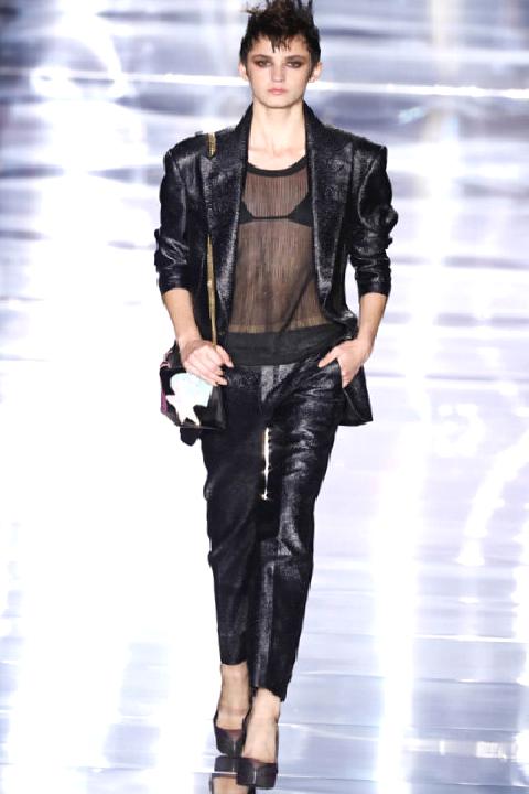 New York Moda Haftası’nda bedenler ilgi odağıydı. Ama Ford, aslında bu kitabı yaklaşık 30 yıl önce yazdı. Bu gecenin koleksiyonu, şeffaf tişörtler, parlak kesimler, sütyen üstleri, şifon elbiseler, seksi ayrıntılara Tom Ford imzasını attı. 80’lerin hareketli hitlerinden oluşan müzikleriyle Tom Ford kızları harika bir partiye hazırdı.