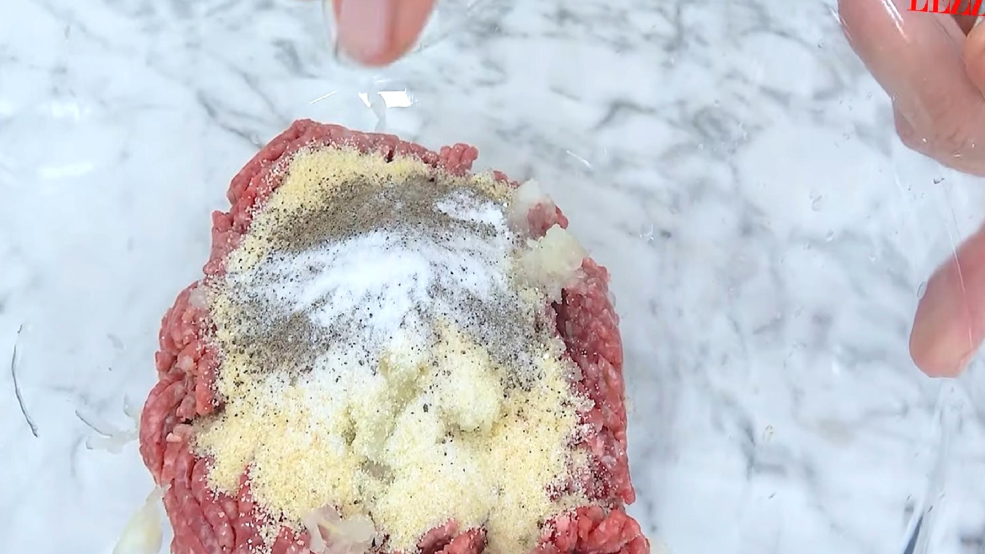 - İlk olarak kıymanın üzerine rendelenmiş soğan, irmik, su ve baharatları ekleyerek yoğurun.