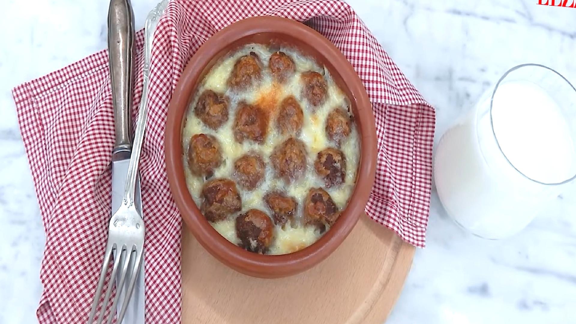 - Köfteleri patates püresinin üzerine yerleştirin. En üst kısma rendelenmiş kaşar peyniri serpiştirin. Önceden ısıtılmış 200 dereceli fırında üzeri kızarana kadar pişirin.