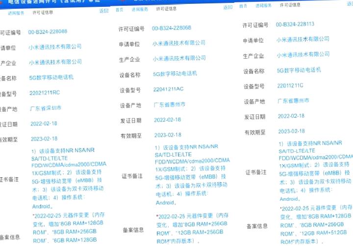 22041211AC model numarasını taşıyan Redmi K50 Pro‘nun ise Snapdragon 8 Gen 1 yahut Dimensity 8100 işlemciyle geleceği bildiriliyor. TENAA kayıtlarına göre aygıt 8/128 GB, 8/256 GB ve 12/256 GB olmak üzere üç farklı konfigürasyonda sunulacak.