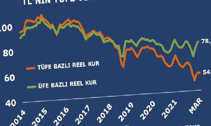 Bu dönemde Yİ-ÜFE bazında reel efektif döviz kuru endeksi de 2,52 puan artışla 76,13’ten 78,65’e yükseldi.