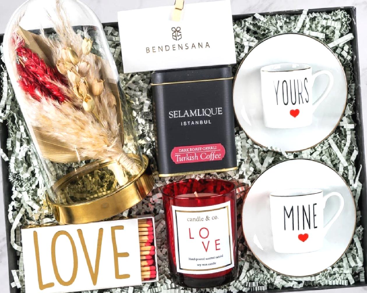 'Senin' ve 'Benim' yazılı iki fincan, 'Aşk' yazılı mum ve Türk kahvesi! Sevgiliniz ile kahve keyfi için aradığınız her şey burada. Aşk dolu sohbetlere hazır olun!
