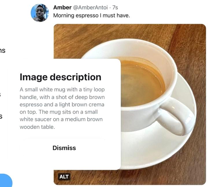 Twitter, bu iki özellik sayesinde az gören yahut bilişsel mahzuru olan kullanıcıların platform ve içerikle etkileşimini kolaylaşacağını öngörüyor. Ayrıyeten internet kontağının iyi olmadığı durumlarda görsele dair bilgi almak için de yararlı olacağı düşünülüyor.