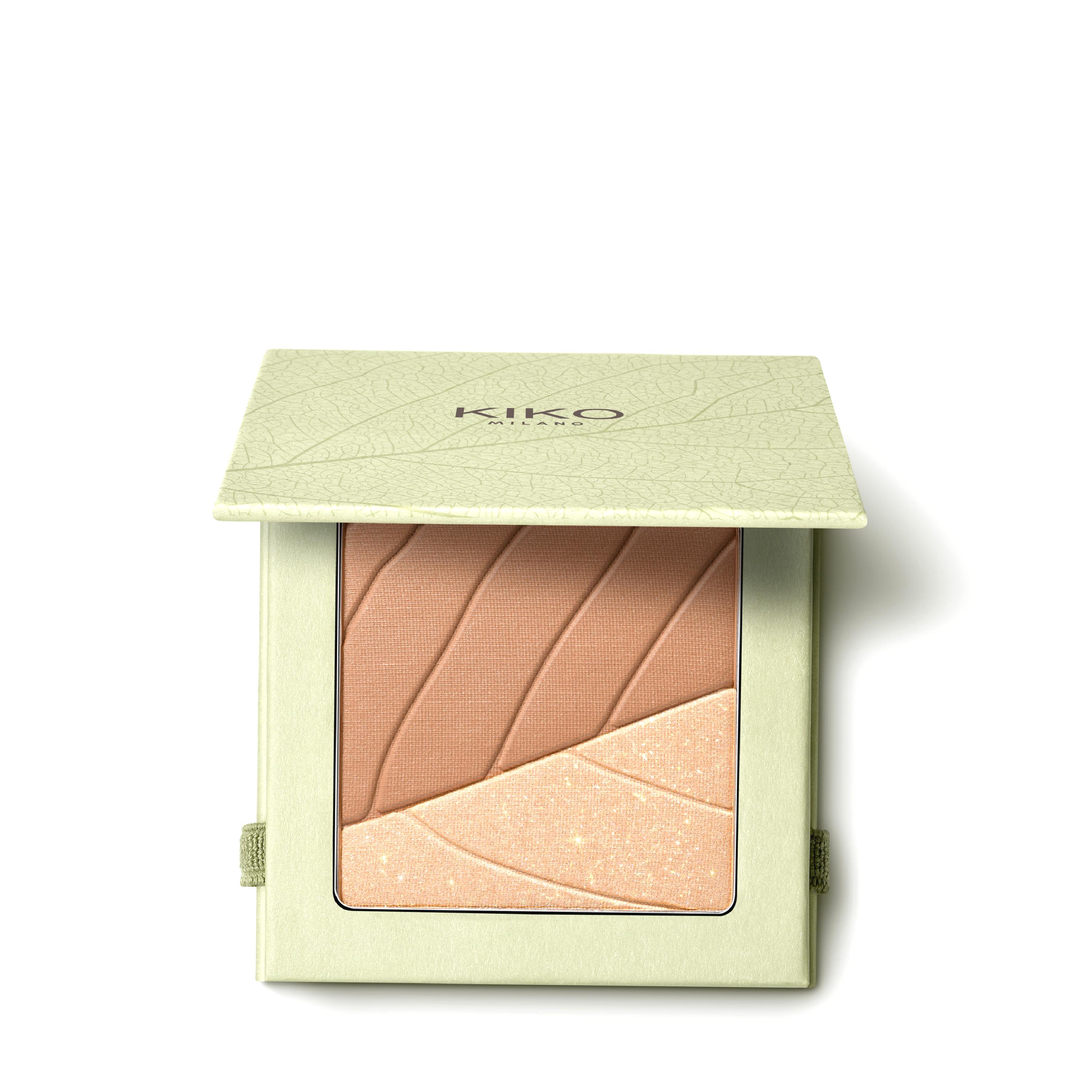 8 saate kadar kalıcılığı test edilmiş bronzlaştırıcı pudra ve allıktan oluşan ürün paleti, tek bir eserle cildini canlandırmak ve yüz çizgilerini şekillendirmek isteyenler için ideal. %94 oranında doğal kaynaklı içeriklere sahip vegan formülü, hint yağı ve hiyalüronik asit ile zenginleştirilmiş.