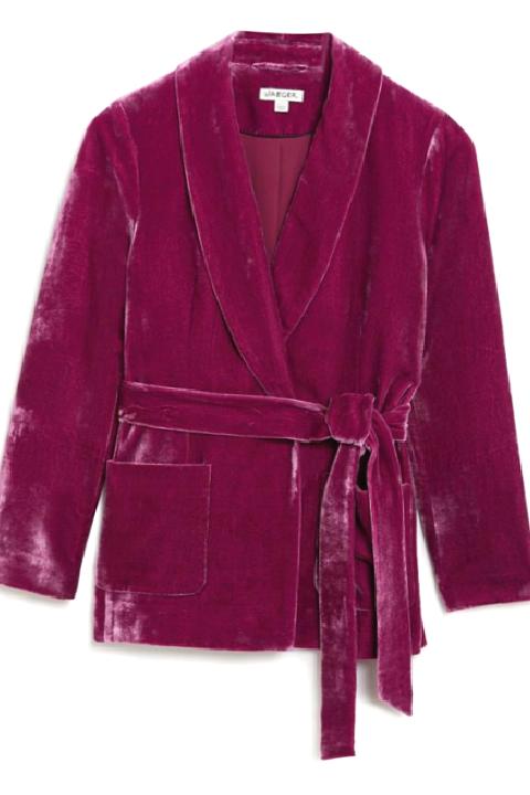 Pembe Kemer Ayrıntılı Kadife Blazer Ceket